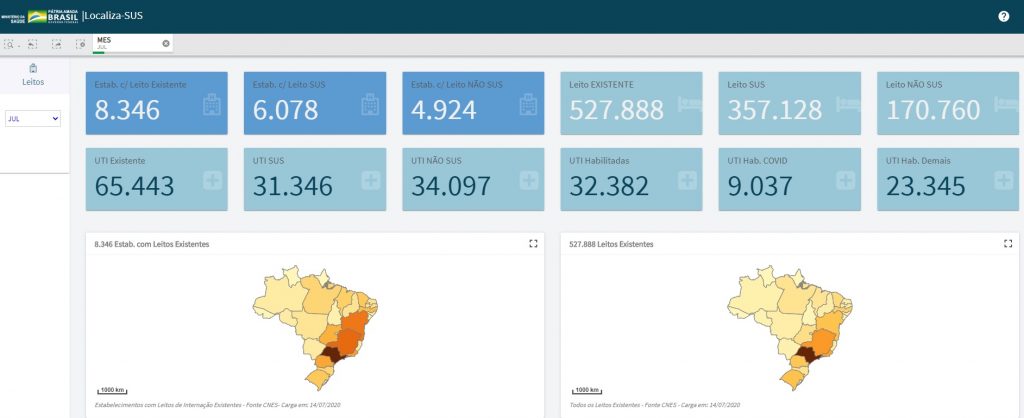 Informações sobre a disponibilidade e o uso dos Leitos Clínicos e de UTI, SUS e Não SUS, distribuídos nos diversos Municípios Brasileiros
