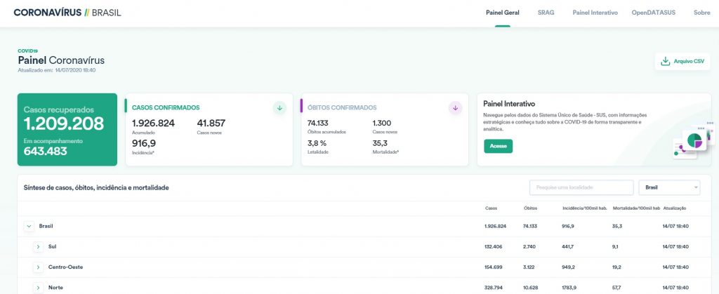 É uma Plataforma de catálogos de dados, permitindo o fácil acesso aos microdados nos principais sistemas do Ministério da Saúde. Face ao COVID, os dados existentes compreendem as notificações e informações de agravos em formato aberto. Este ambiente está em constante atualização para incorporar novas fontes de dados.