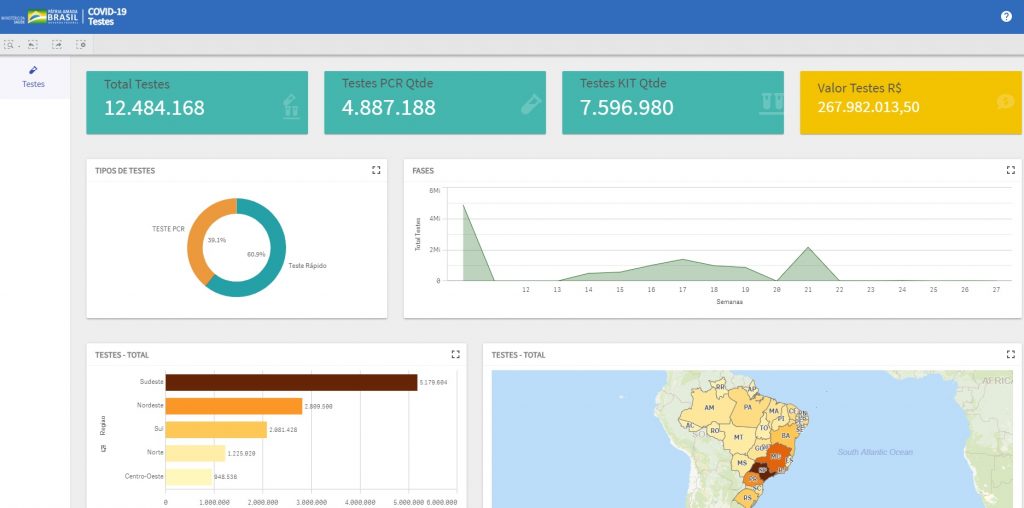 Informações sobre a disponibilização de TESTES distribuídos para os diversos Municípios Brasileiros, no âmbito do combate à COVID-19.