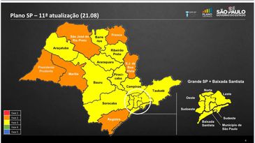 De acordo com a nova atualização do Plano São Paulo, o governo manteve apenas seis regiões do estado na Fase 2 – Laranja. O restante das regiões, o que corresponde a 88,3% do território paulista, está na Fase 3 – Amarela, etapa de flexibilização.